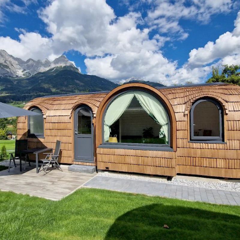 Unsere 5 beliebten Tiny Häuser bieten einen komfortablen Schlafbereich mit Ausblick direkt vom Doppelbett, Platz für bis zu zwei Erwachsene, eine Küche mit intelligenter Raumnutzung, einen Wohnbereich mit viel natürlichem Licht durch ein Panoramafenster und ein komplettes modernes Badezimmer.
